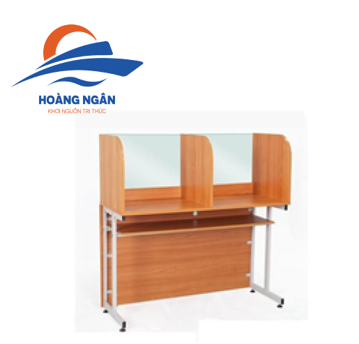 Bàn học ngoại ngữ 2 chỗ ngồi KT: 1400x500x750 – 1200 Khung thép sơn tĩnh điện sản xuất công nghiệp, hàn công nghệ Co2 Mặt gỗ MDF 18ml, phủ melamin (hoặc gỗ tự chọn)