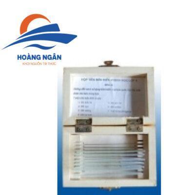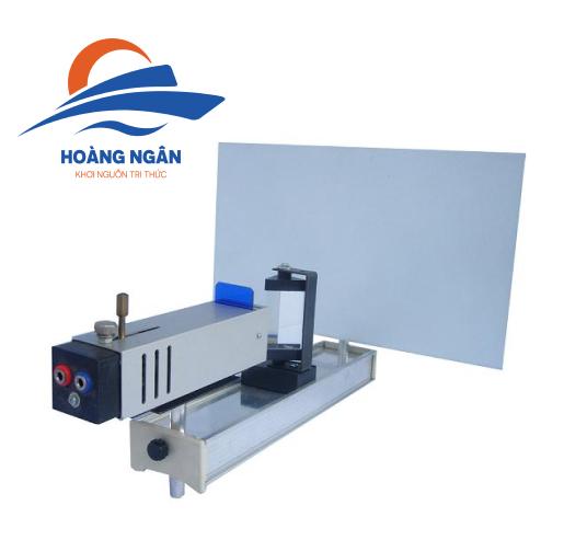 Gồm: Một nguồn sáng kích thước (38x38x150)mm bằng nhôm sơn tĩnh điện màu da cam; bóng đèn 12V-21W, gắn thấu kính hội tụ f=50mm có khe cài và tấm lọc màu bằng thuỷ tinh hữu cơ (nửa xanh, nửa đỏ). Một lăng kính tam giác đều cạnh 25mm, cao 70mm trên gá đỡ và trục quay có vít hãm. Một đế kích thước (100x250x30)mm bằng nhôm sơn tĩnh điện màu da cam có gắn miếng sắt kích thước (30×60)mm dày 2mm để đặt nguồn sáng; Trên đế có gắn màn hứng ảnh bằng nhựa màu trắng mờ kích thước (80×120) mm có giá quay (cán quay dài 150mm).