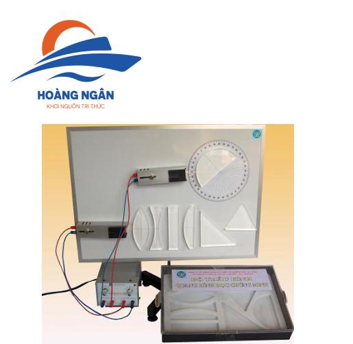 Bộ thí nghiệm quang hình biểu diễn Bảng gỗ mặt tole. Bộ 2 đèn chiếu sáng. Bản bán trụ. Bản 2 mặt song song. Bản lăng kính tam giác đều. Bản lăng kính phản xạ tòan phần tam giác vuông cân. Bản thấu kính hội tụ (2 mặt lồi ). Bản thấu.